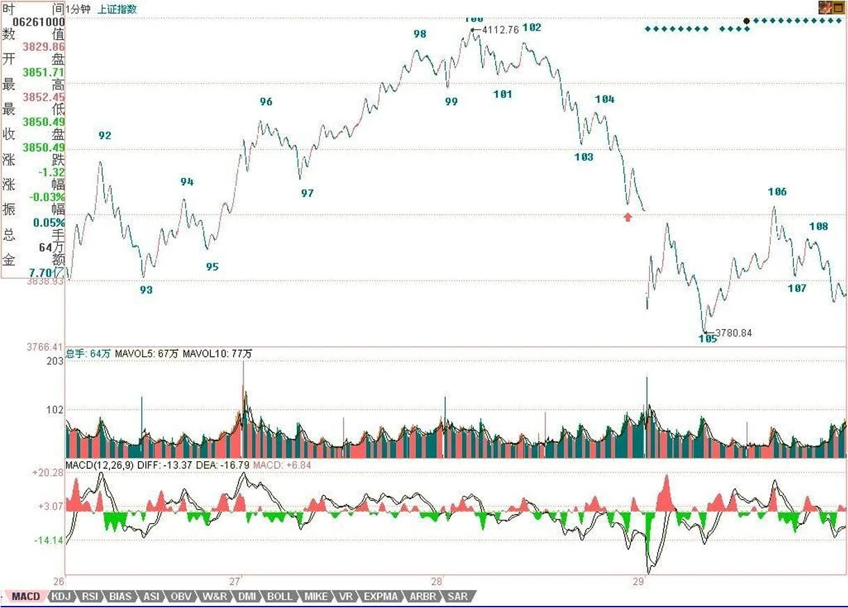 今天105的背驰十分简单,但由于前面没有明确的1分钟中枢,所以这种背驰一般都只构成盘中的意义,昨天已经说过,只有1分钟以上级别的背驰才有参与意义。目前交易成本这么贵,又不是T+0,所以不熟练的,一定只能参与一些大级别的活动,太小的,估计只能用在权证或特别强势的股票上。但技术好的除外。今天,这样的震荡可以又吸出不少的血。