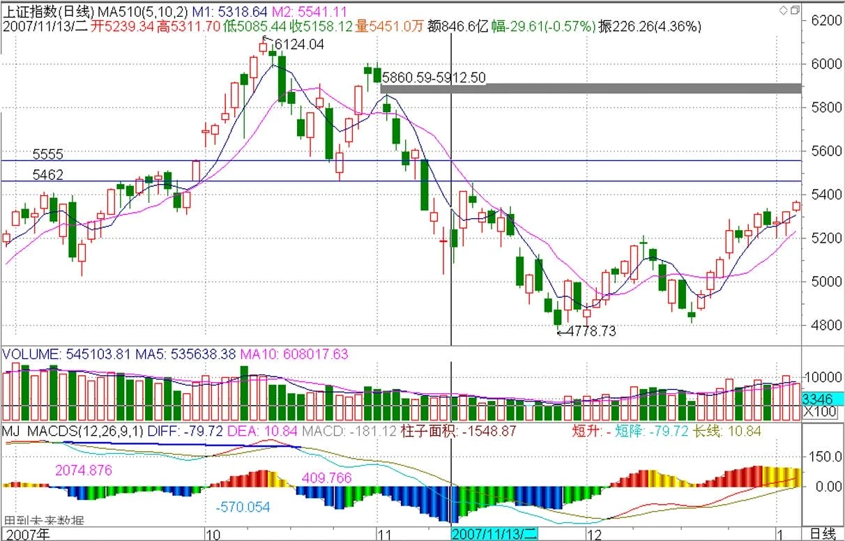 下面的问题就是5462点重回后能不能站住,站住就有更大的反弹空间。另外,注意期货的消息,如果最近有关于这方面明确的消息,那么指数的走势就会有很大变数,也就是说,指数存在创新高的可能,不过这和绝大多数人无关。