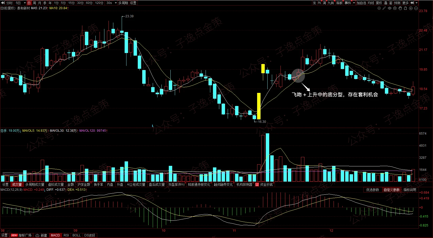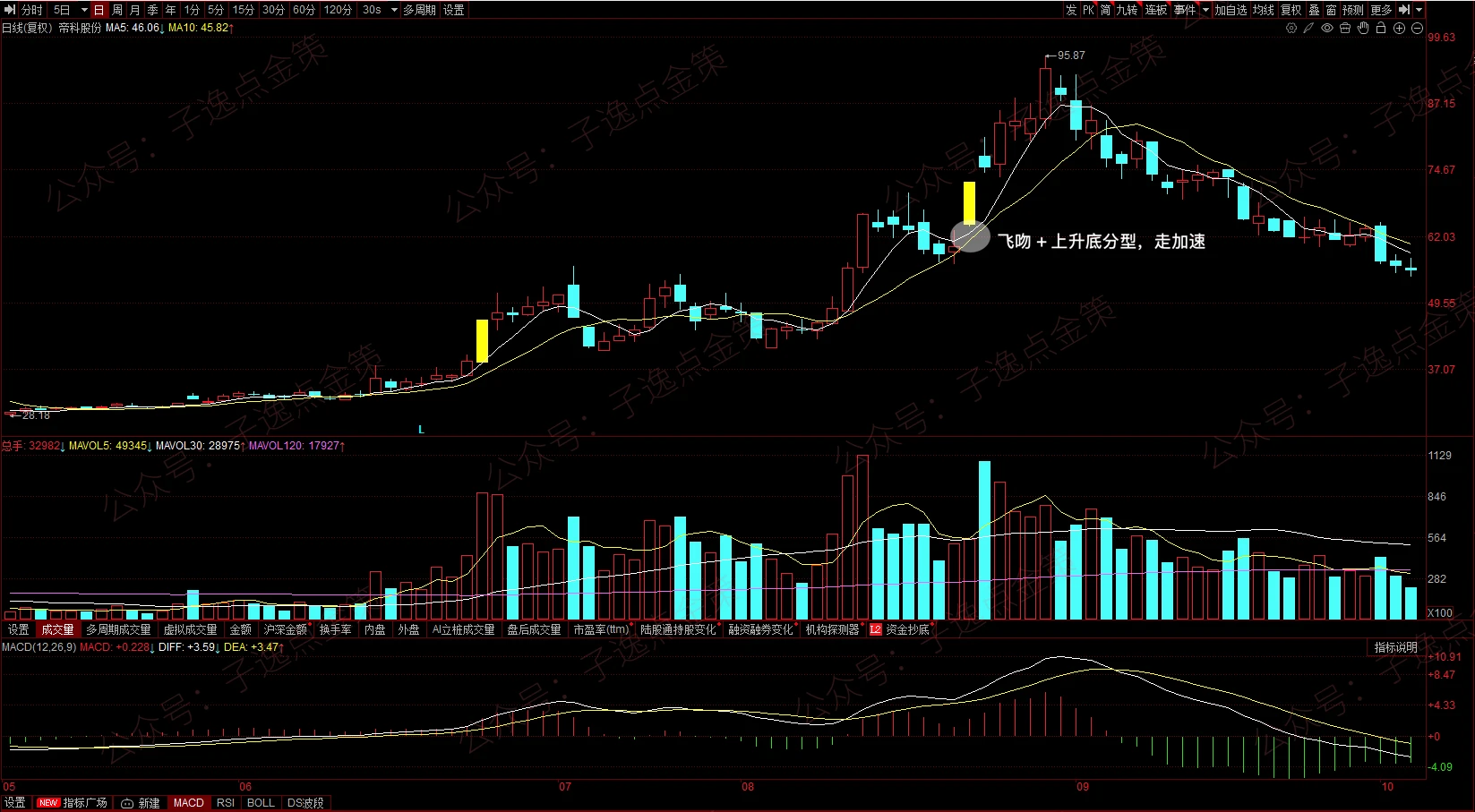 女主角(长期均线):通常指10日或20日均线,代表中期的趋势,性情稳重,方向感强。